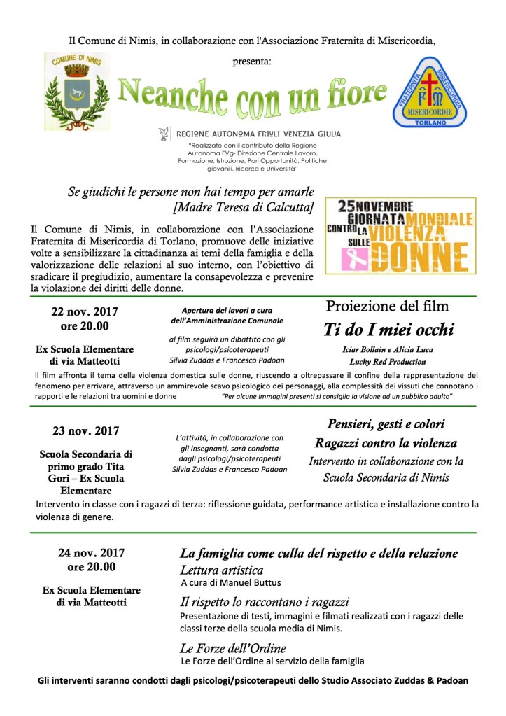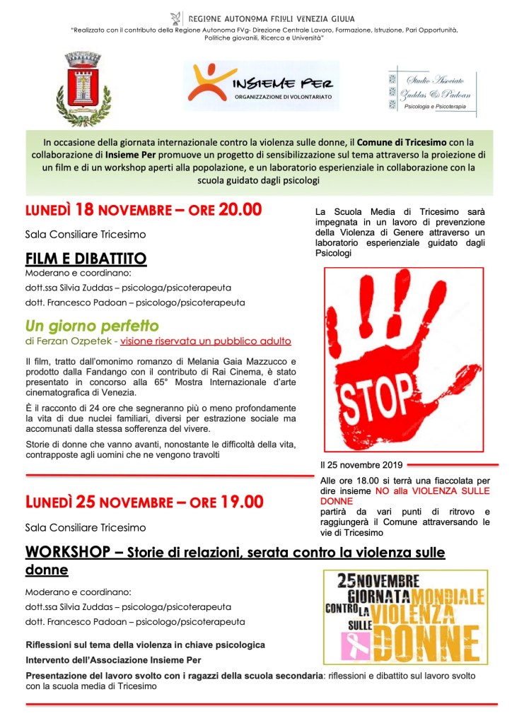 Da anni lo Studio si impegna a lavorare sui temi della violenza di genere e IN genere, infatti, in occasione della Giornata Internazionale per l’Eliminazione della Violenza sulle Donne, si costruiscono progetti in collaborazione con le Pubbliche Amministrazioni, le Scuole, le Associazioni del territorio e tutti i soggetti attivamente impegnati nel contrastare e soprattuto prevenire ogni forma di sopruso e pregiudizio.